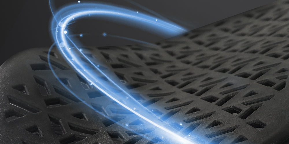 搭載343個透氣孔,使通風效果大幅提升,讓你坐再久都不會悶熱不適。