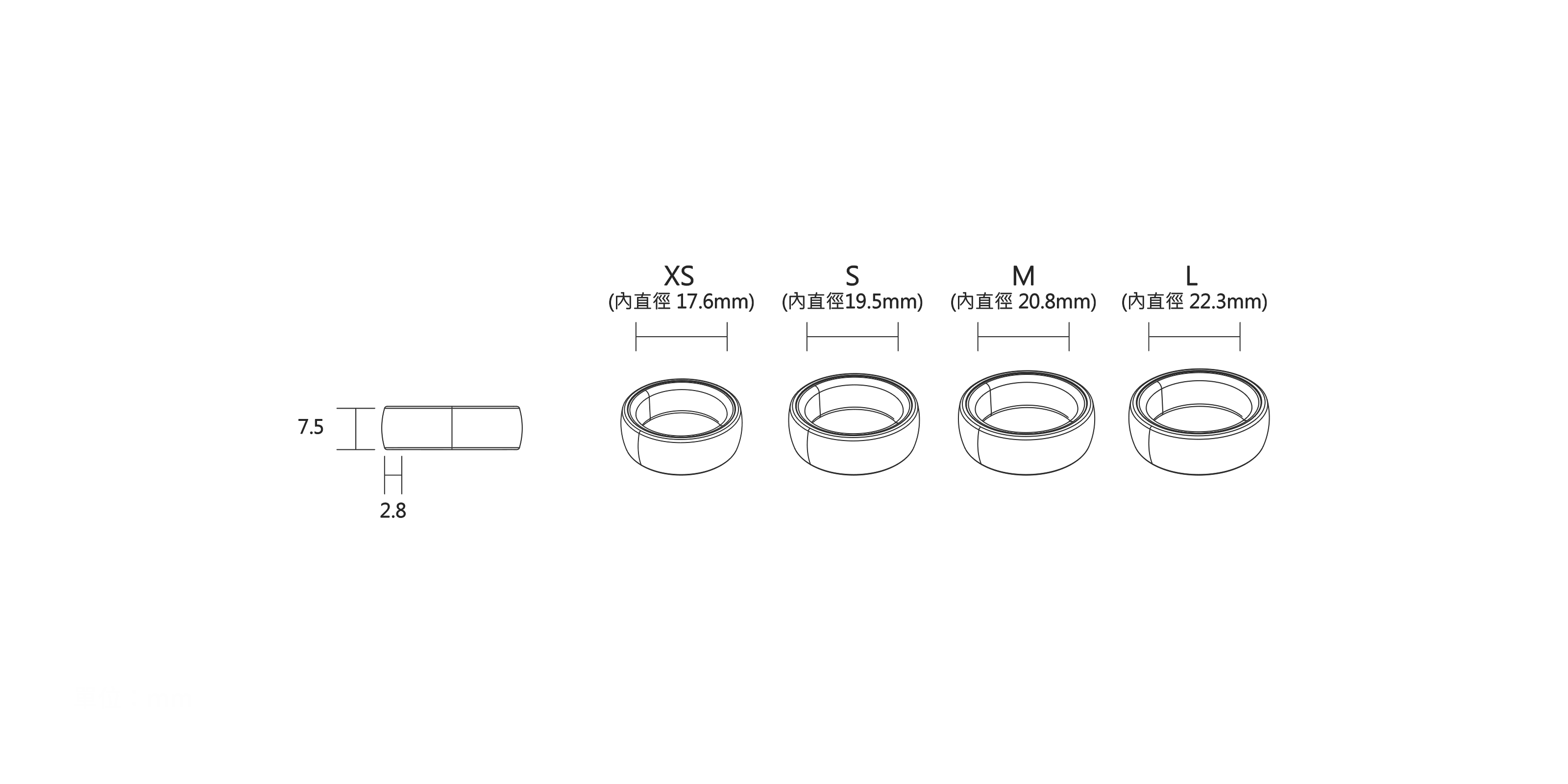 - XS (內直徑 17.6mm)