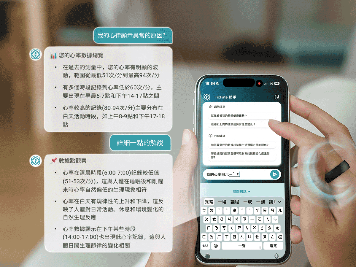 它能根據日常生活數據,提供 睡眠品質分析與改善建議,協助 體態管理與飲食提醒,追蹤並優化 運動成效,並在需要時給予 即時的智能健康協助。讓你獲得專屬於自己的精準健康方案,而不是制式化的回覆。
