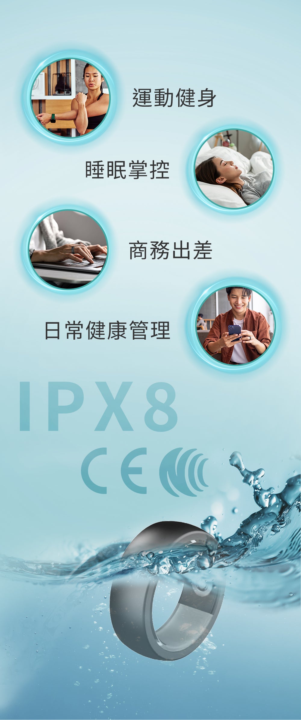 防水等級: IPX8,全場景可用