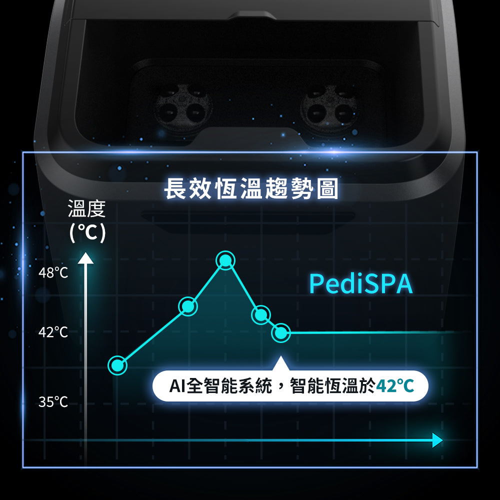 依照自己的喜好的溫度調整35 ~ 48度,採精密AI全智能系統,達到長效恆溫。